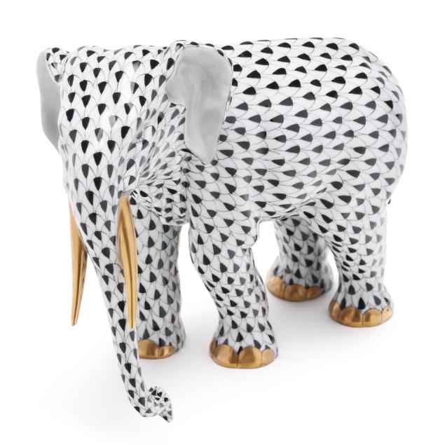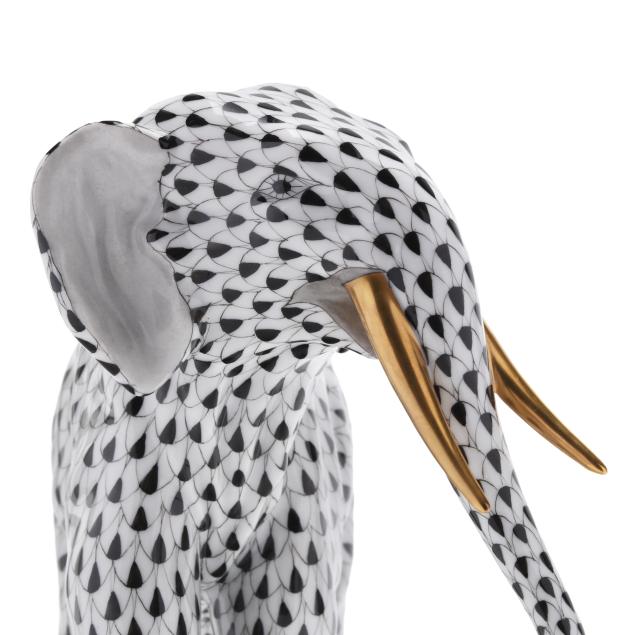 Hungary, hand-painted and gilt porcelain, #15265 elephant, marked with company backstamp to underside.