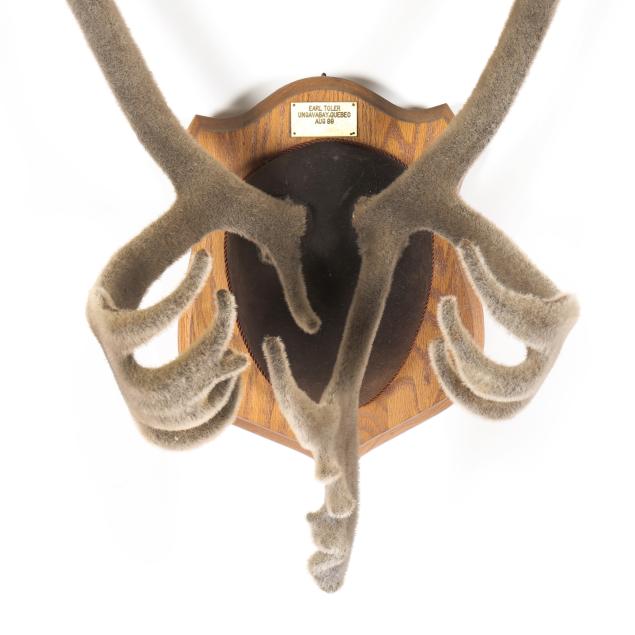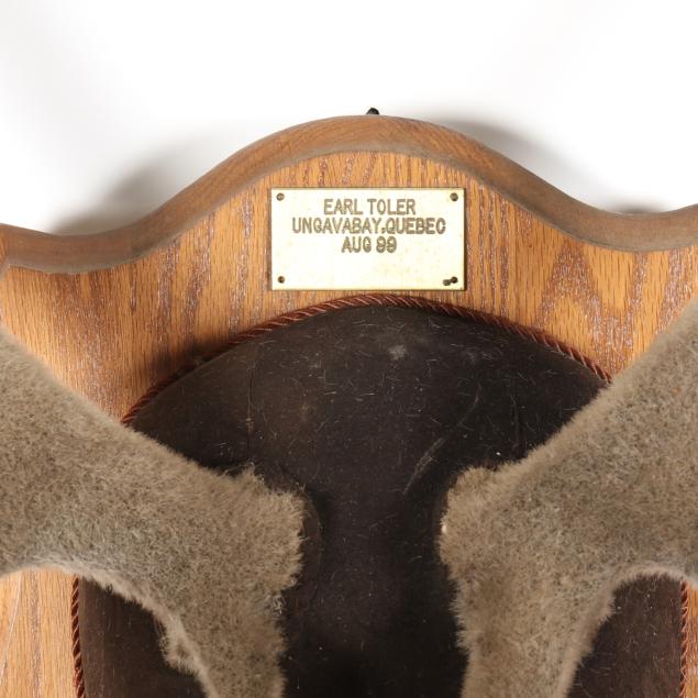 Late 20th century, mounted to shield form oak plaque with engraved brass cachet reading "EARL TOLER / UNGAVABAY, QUEBEC / AUG 99".