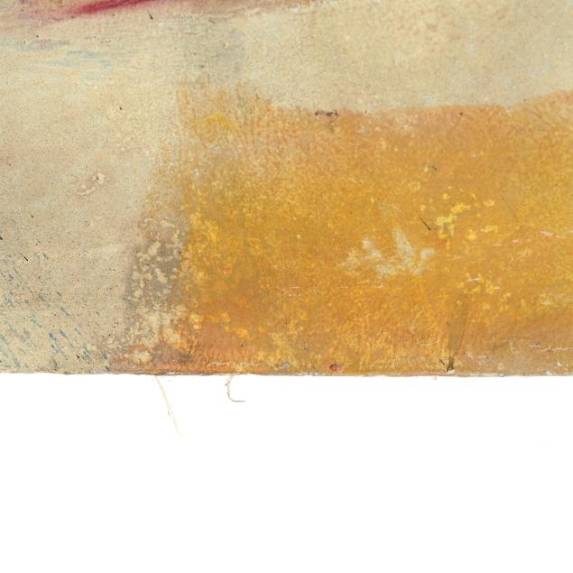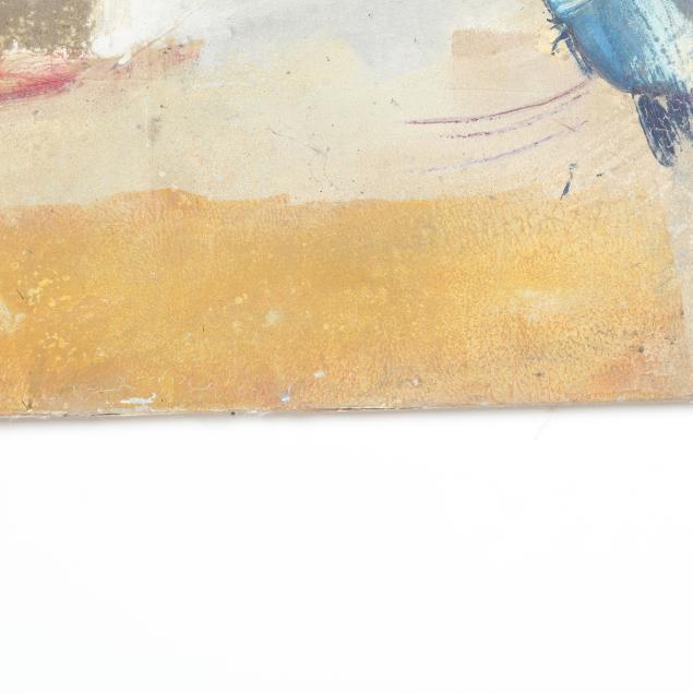 Some minor paint chipping to edges; soft buckling to canvas at lower right corner.
