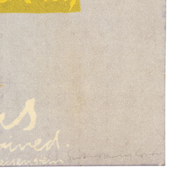 Silkscreen print in colors, 1965, artist signed at lower right, with full margins, unframed. Corita Art Center, Archive ID Number 65-44.
