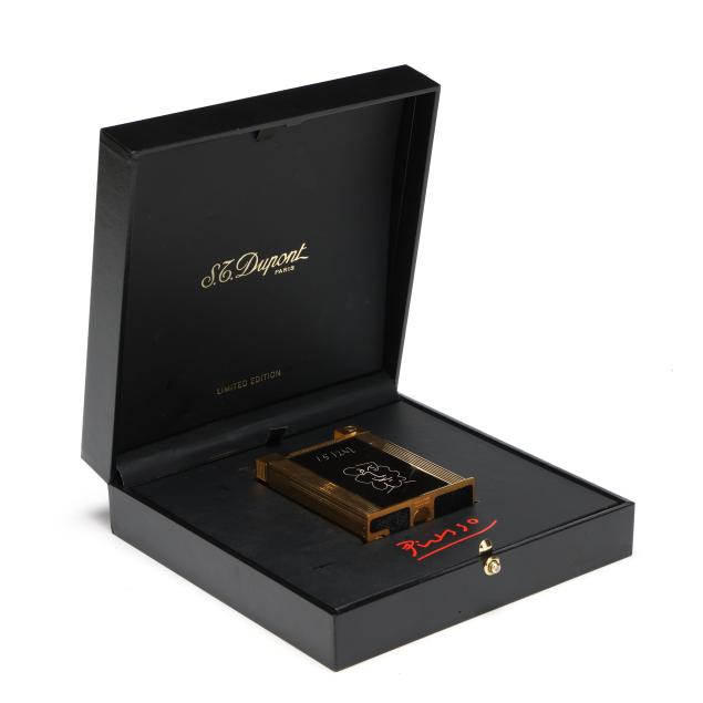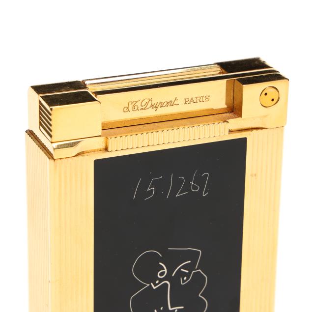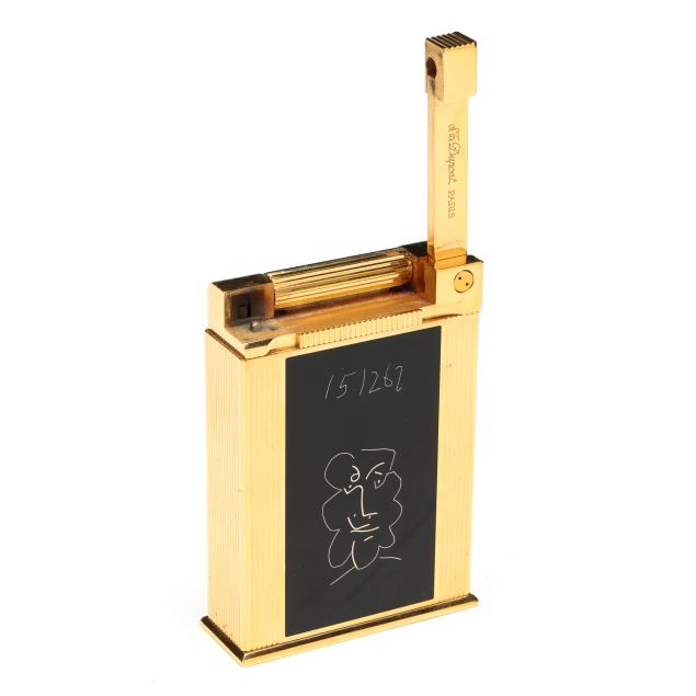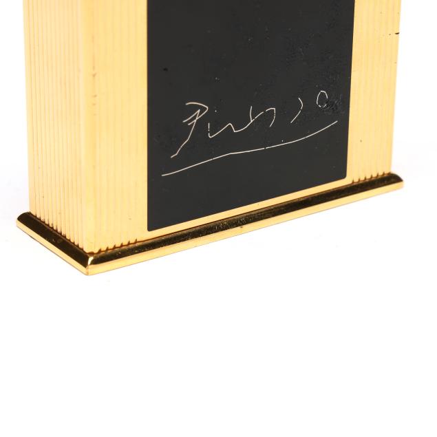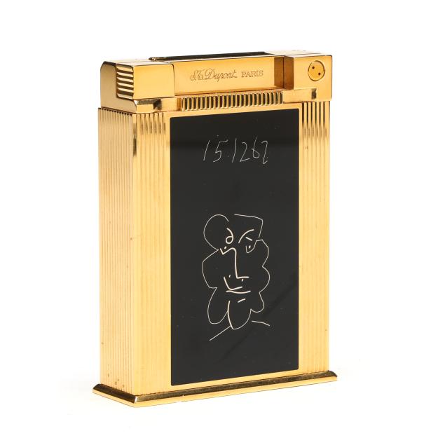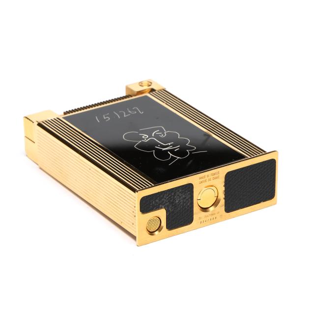 France, 1998, Chinese lacquer and 24k gold plated table lighter, numbered 024/500, marked "MADE IN FRANCE / LAQUE DE CHINE" and "© Suc. Picasso 98" with Dupont hallmark to underside, presented in original box with (3) fluid refills.