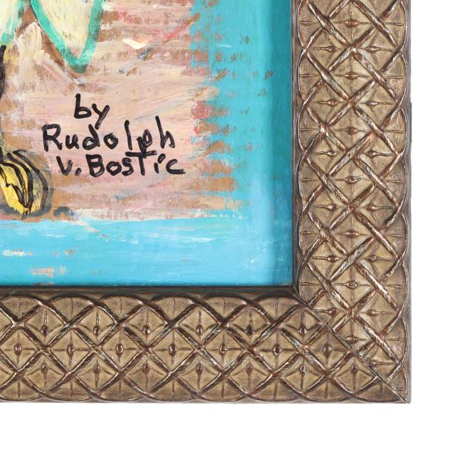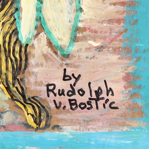 Rudolph Bostic was a self-taught folk artist from Savannah, Georgia, known for his boldly colored, imaginative paintings depicting biblical stories, historical figures, and African American life. With no formal training, he created art on found materials like cardboard and poster board, transforming everyday items into expressive, dreamlike scenes. Blending themes of faith, resilience, and culture, Bostic’s work has been widely exhibited and collected, earning him recognition as a major figure in Southern folk art.