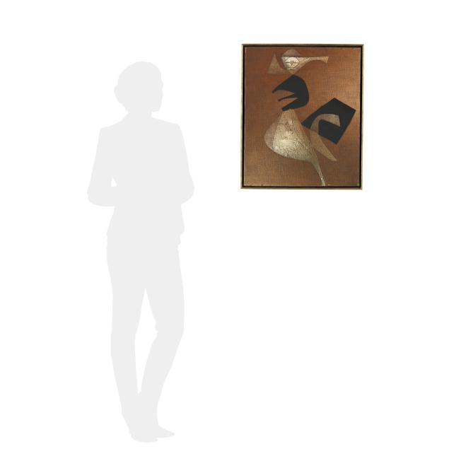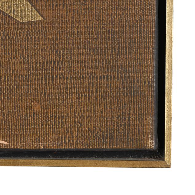 Oil and collage on canvas, 1966, signed and dated to the verso, presented in a floater frame.