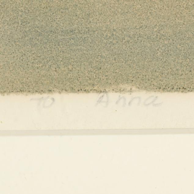 Monoprint in colors on paper, pencil signed, titled, and numbered "1/1" to lower margin, matted and framed below glass.