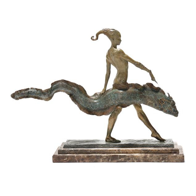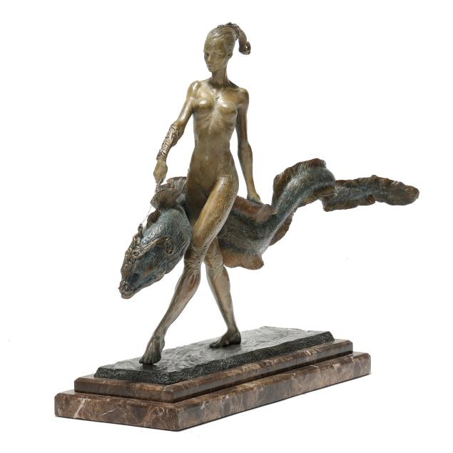 Private Collection, Chapel Hill and Greensboro, North Carolina This exceptional sculpture, since its inception, has attracted admiration from various figurative sculptors, animators, and a wide array of online forums and social media platforms. Mark's own sculptural oeuvre draws upon his professional interest in character design, but also his appreciation of fine artists such as Edward McCartan (American, 1879-1947), Alphonse Maria Mucha (Czechia, 1860-1939), as well as Italian masters Michelangelo and Bernini. This fantastic piece exhibits strong similarities in composition to McCartan's well known sculpture