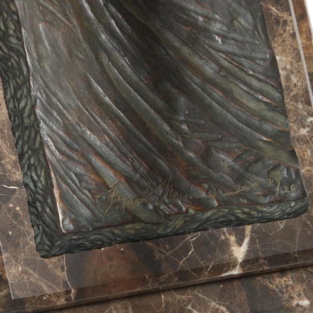 2009, patinated bronze, limited edition numbered 7 of 20, signed and dated to the terraced edge, mounted atop a unique stepped polished marble base (only casting with this base).