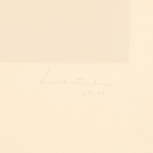 Lithograph in colors on pinkish-ivory wove Arches paper, 1967-69, pencil signed, dated, and numbered 7/25 lower margin, printed by Donn H. Steward, published by Universal Limited Art Editions, West Islip, New York and with their blindstamp lower left, full margins (deckle edges), framed.