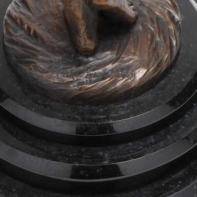 2013, patinated bronze, limited edition numbered 1 of 25, with impressed signature and date to the terrace, mounted atop a stepped round polished stone base. Included with the Lot is the original box and packaging.