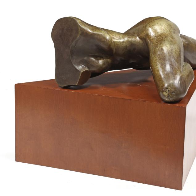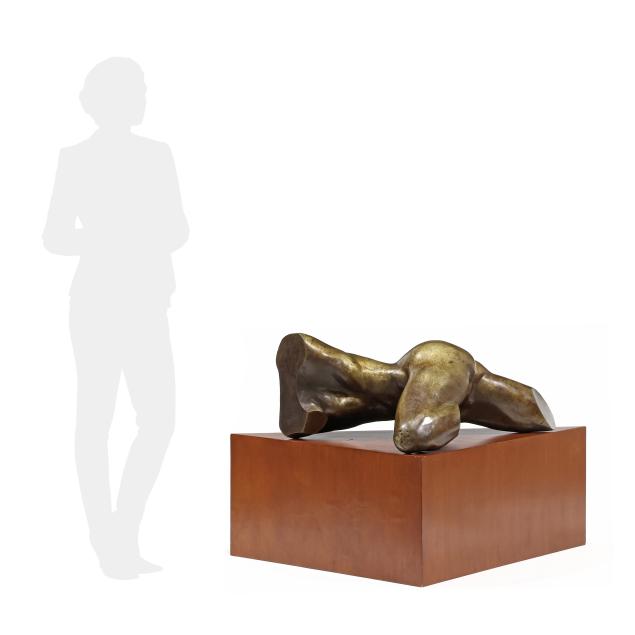 Life-size patinated bronze, signed and numbered "Perdoma 1-1," possibly from the artist's series in 'Fragments and Deconstruction' of the female form, together with a triangular wooden display plinth.