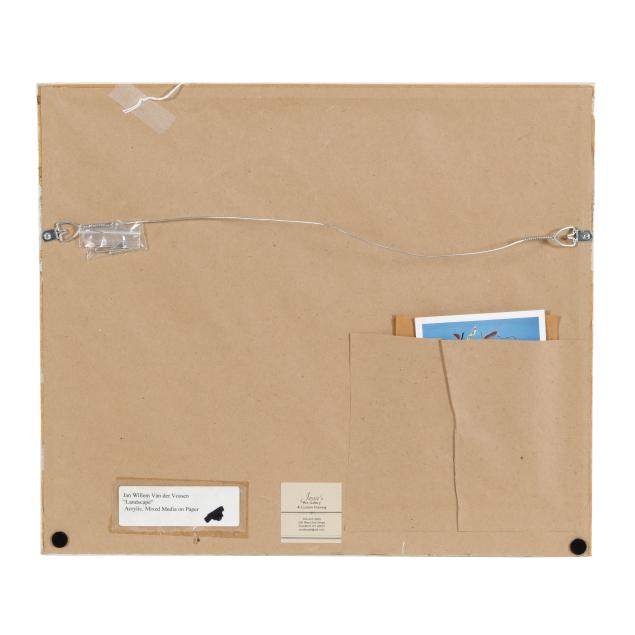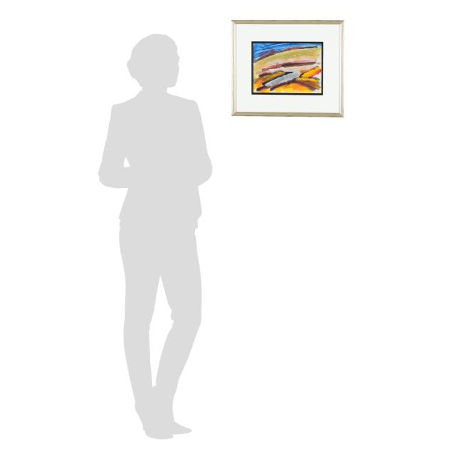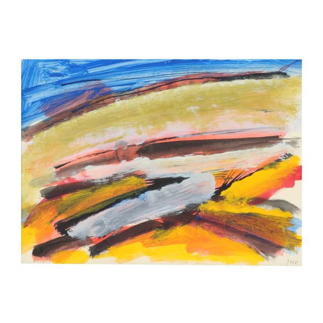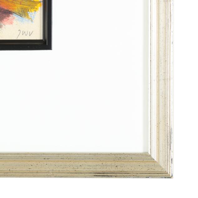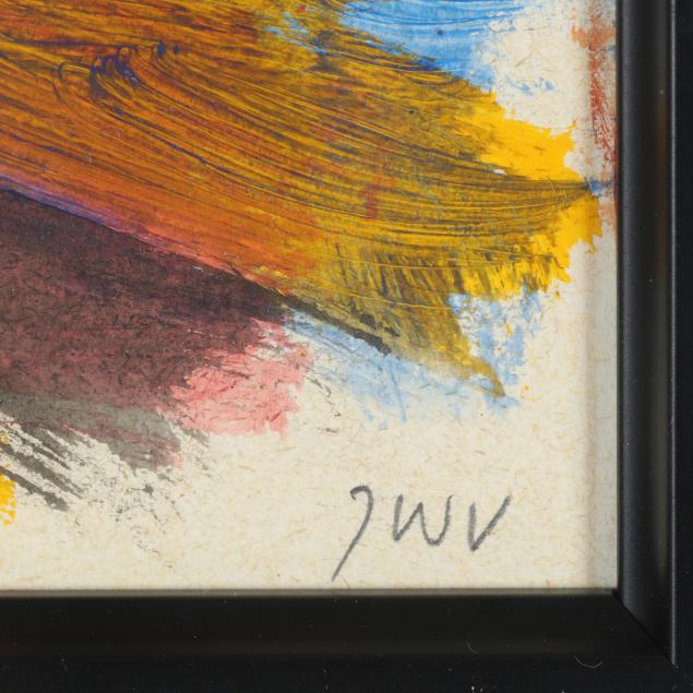 Acrylic and media on paper, 2009, initialed at lower right, matted and framed below glass.