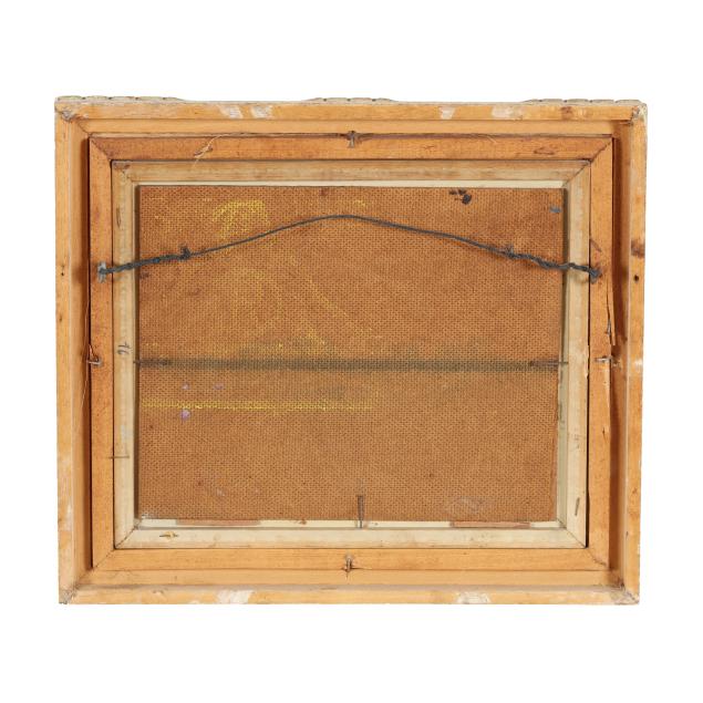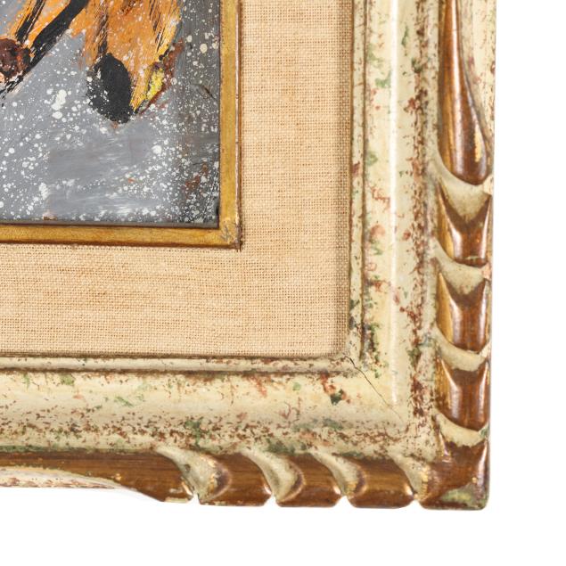 Oil on masonite, signed at lower left, presented in a painted frame.