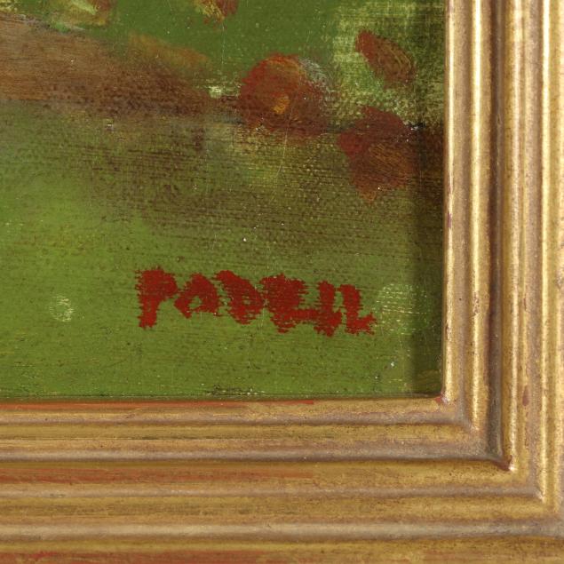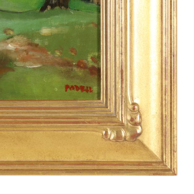 Oil on canvas, signed "Padril" at lower right, presented in a gilt frame.