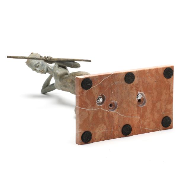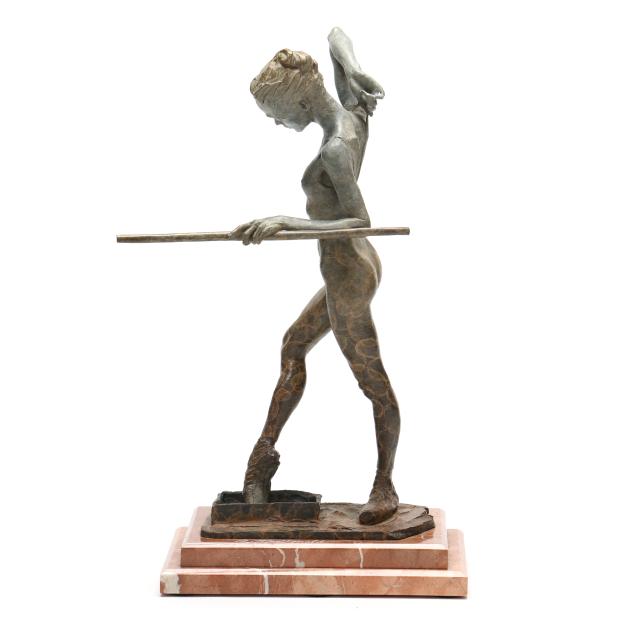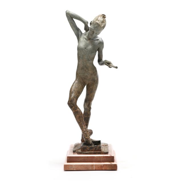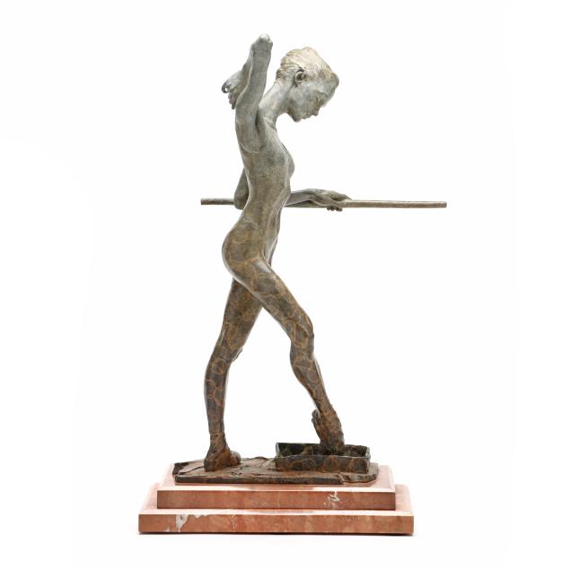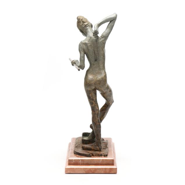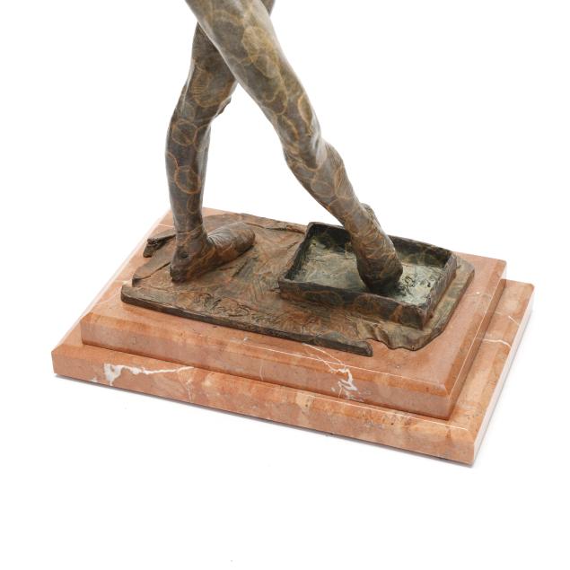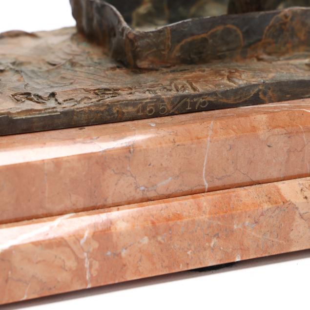 1992, bronze with applied patina, edition numbered "155/175" and signed to the terrace, with additional etched signature to the tiered polished sienna stone base. Together with a felt tote from the artist's studio.