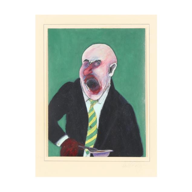 Acrylic and gouache on paper, 1986, signed to the lower mount, retaining gallery label to verso, mounted and framed below glass.