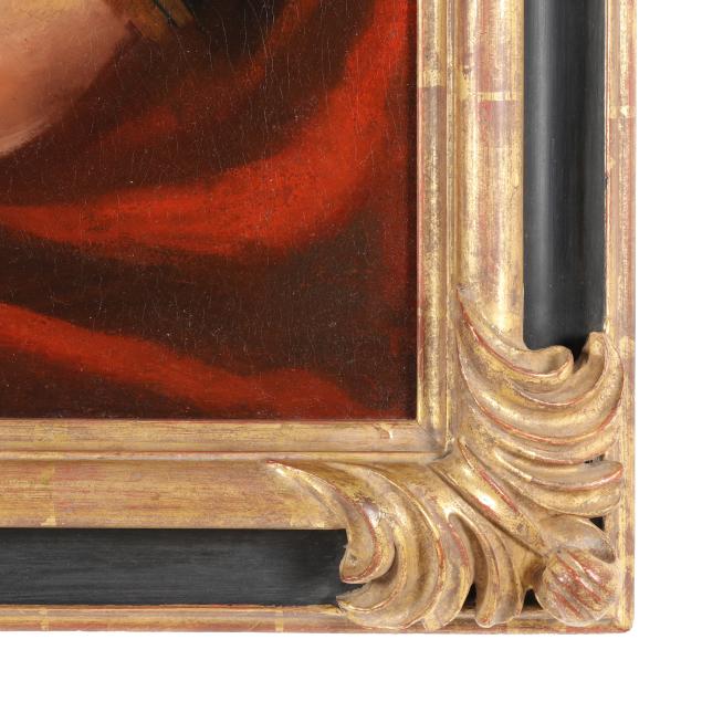 Oil on canvas (lined), unsigned, presented in a parcel-gilt frame.