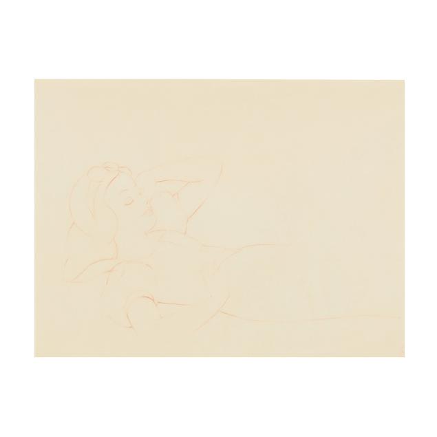 Red pencil on paper, 1937, numbered "8" in the lower right corner, matted and framed under UV glass.