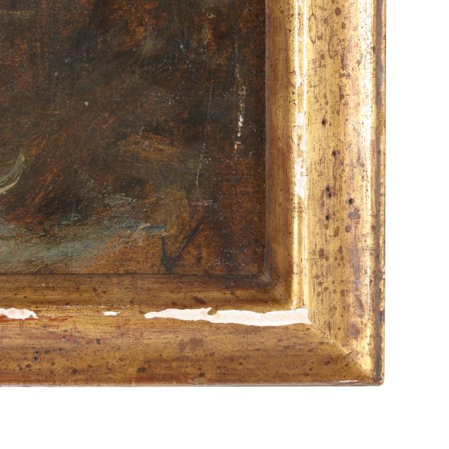 Oil on board, unsigned, retaining gallery label to the verso (note that the letter of authentication mentioned has been lost and is not available), framed.