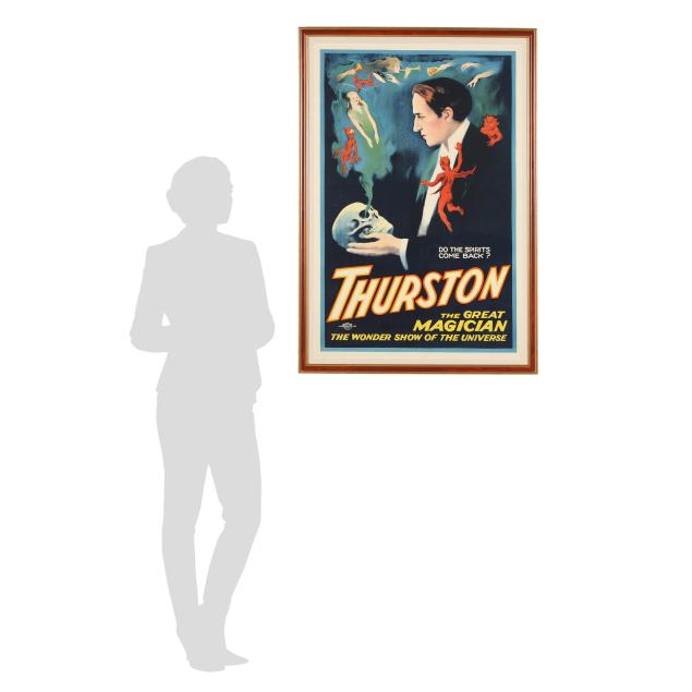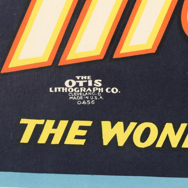 The Great Magician / The Wonder Show of the Universe, lithographic poster in colors, circa 1928, printed by the Otis Lithograph Co., Cleveland, Ohio, matted and framed below glass.