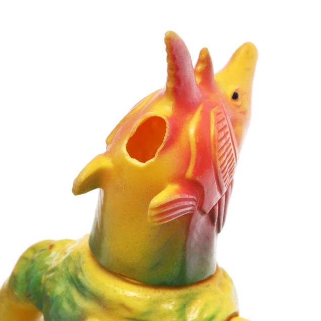 Being Sold to Benefit the Habitat for Humanities of Orange, Durham, Wake and Johnston Counties of North Carolina Smaller Chameleking with loss to tip of tail; Muruchi figure with loss to apical spike, all with small scattered surface marks and handling wear.