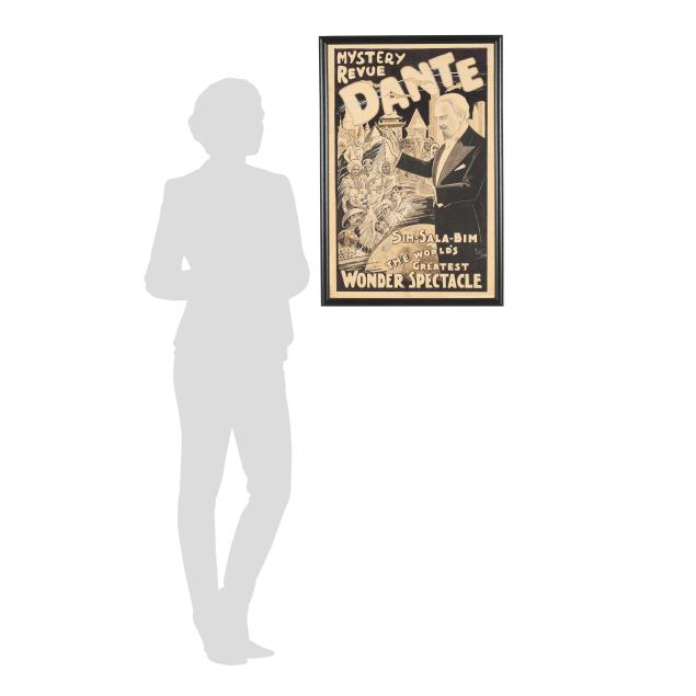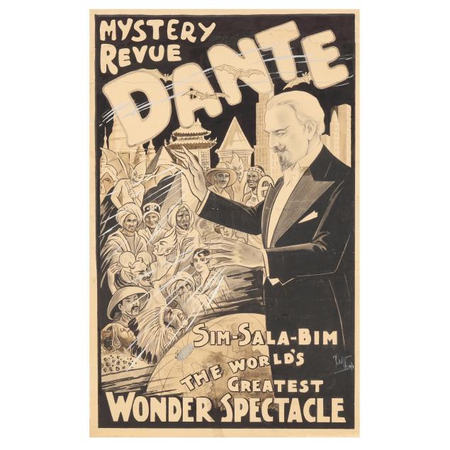 This poster features Harry August "Dante" Jensen (Danish-American, 1883-1955), the original design for a lithographic poster that circulated in London for his farewell visit to the Hanley Theatre Royal.