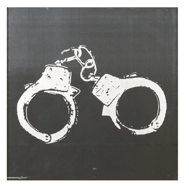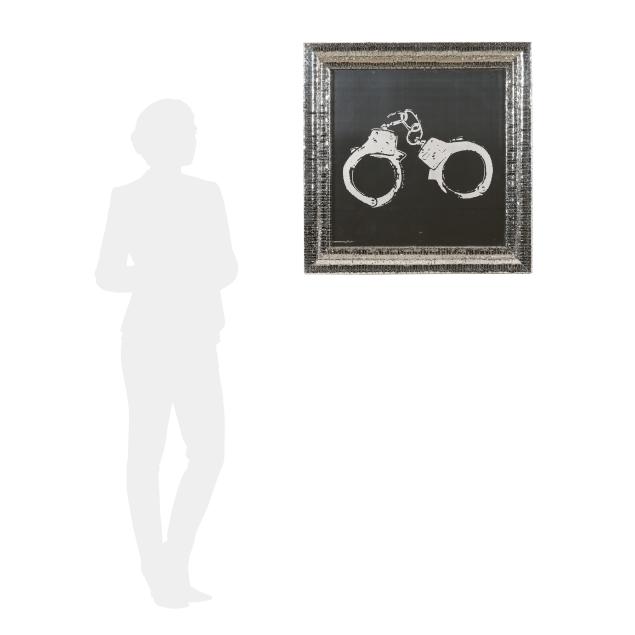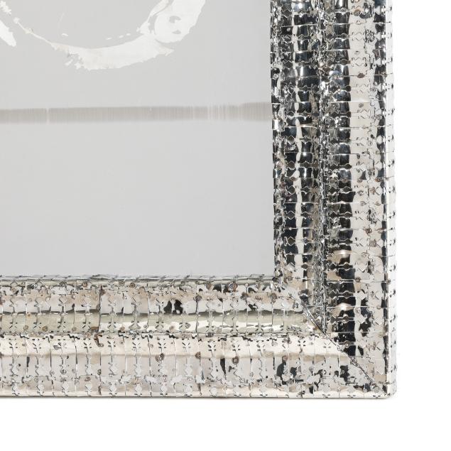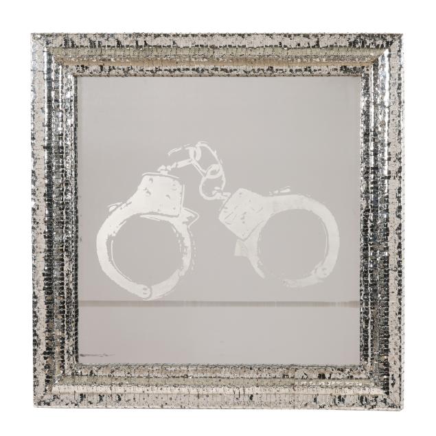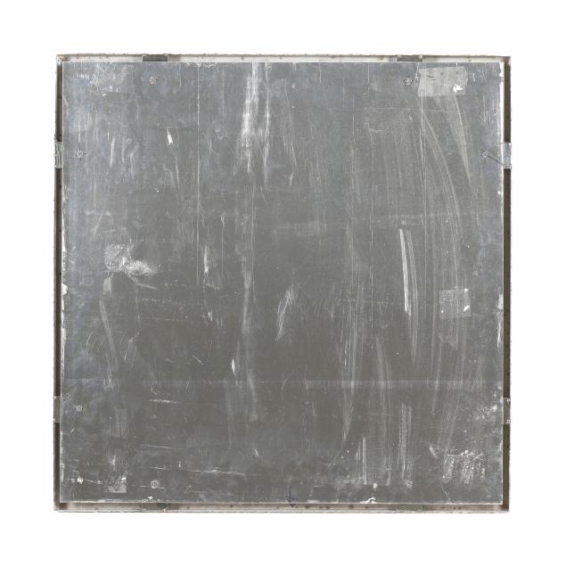 Stainless steel razor blade and exposed drawing on mirror polished stainless steel, 2013, with custom chromed metal frame, unmarked.
