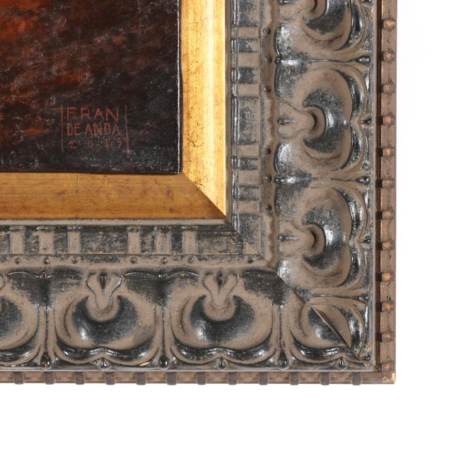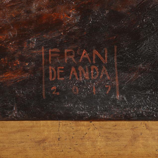 Oil on panel, 2017, signed "Fran de Anda" and dated at lower right, presented in attractive partial gilt and painted frame.