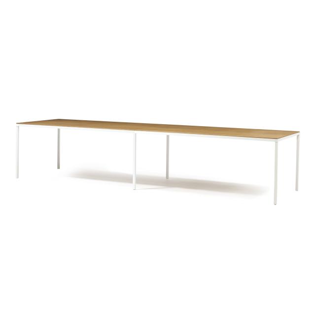 Contemporary, beech top with white powder coated steel legs, appears unmarked.