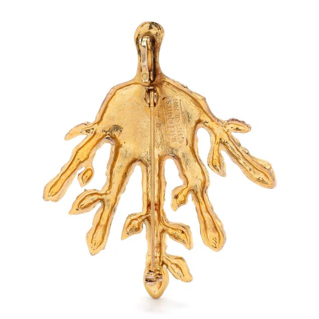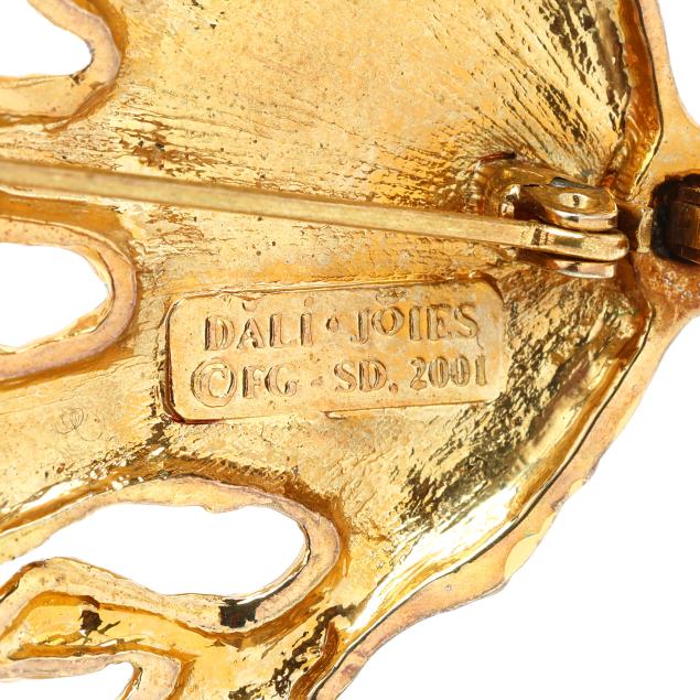 Joies, 2001 production, gold tone metal with colored glass, impressed signature "Dali" and maker's stamp to interior.