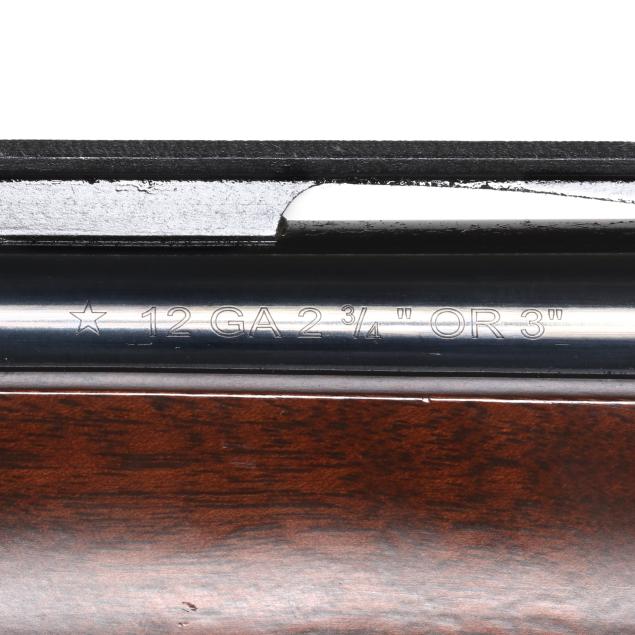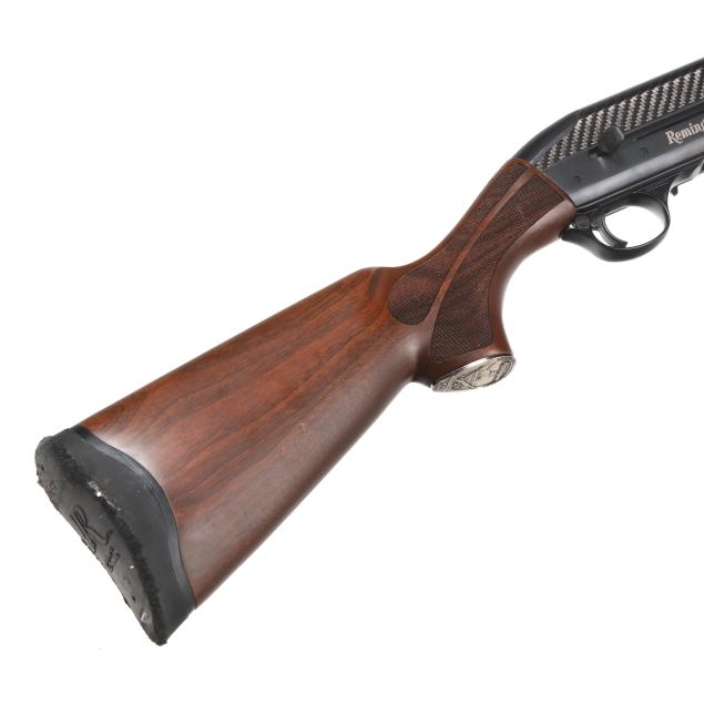 Overall very good estate condition, bore is bright and shiny, gun presents as nearly unfired, blued finishes are strong and clean, attractive walnut was selected and ornate checkering pattern applied, satin sheen stock finish, some scattered light field marks and a splattering of a substance that has left some light color speckles on the forend and in the checkering, recoil pad is sticky which is a frequently found state with Remington recoil pads from this period.