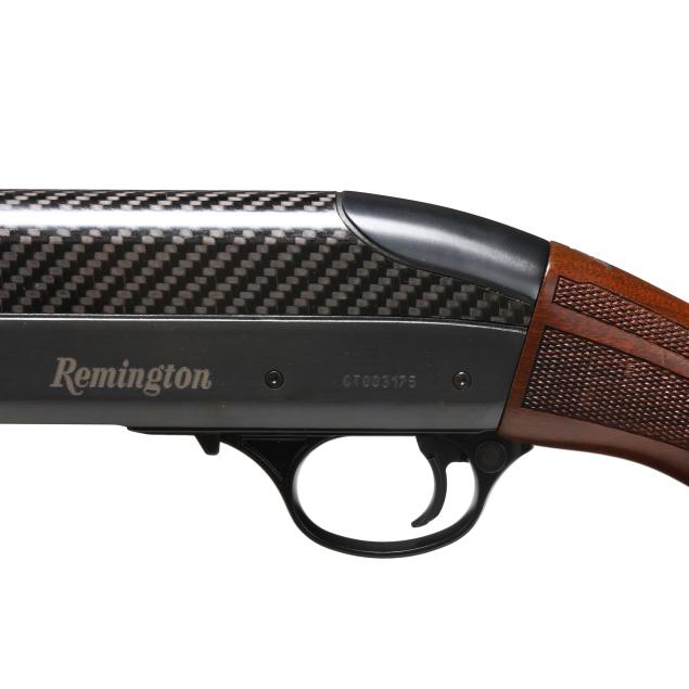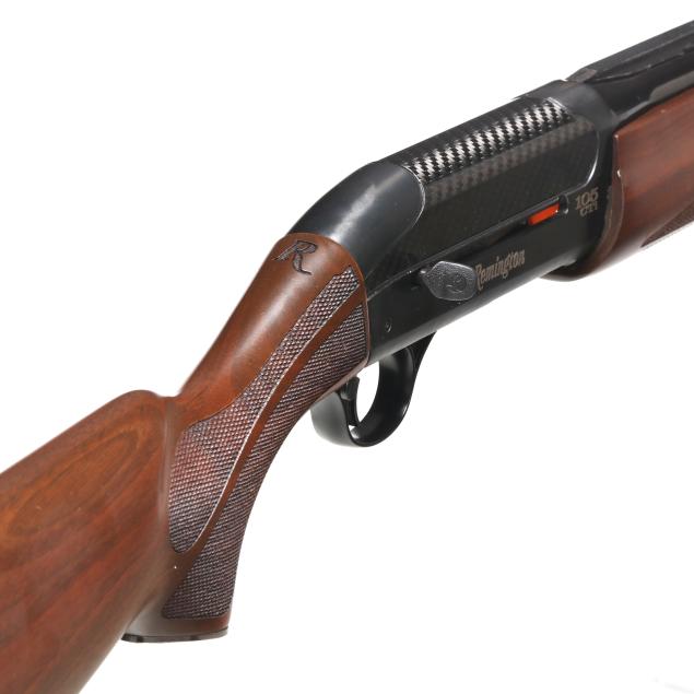 Serial number CT003175 present on left side of semi-automatic action carbon fiber and steel receiver, text of REMINGTON 105 CTi present on left side of receiver, text of 12GA 2 3/4" OR 3" present on 28 in. blued steel vent rib barrel with front and middle beads and screw-in choke, manual safety, checkered walnut stock and forend, text of 105 CTi present within the forend checkering pattern, pistol grip cap citing 100 YEARS OF AUTOLOADING SHOTGUNS REMINGTON CENTENNIAL 1905 2005, factory recoil pad.