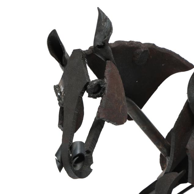 Private Collection of a Lady, Aiken, South Carolina Joseph Fichter is a professional sculptor with 40 years of experience. His home, sculpture studio, and horse barn are located in Putney, Vermont where he has focused on creating welded and forged horse sculptures for the past 16 years. Inspired by the horse in motion, Fichter strives to truthfully convey the spirit of these beautiful creatures. His deep respect for the material and the working process are key elements that inform his work.