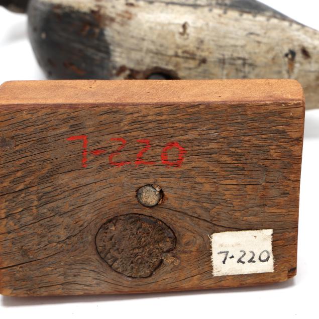 Long Island, New York, before 1900, carved and painted wood, 7-220 marked in red on the bottom of the base.