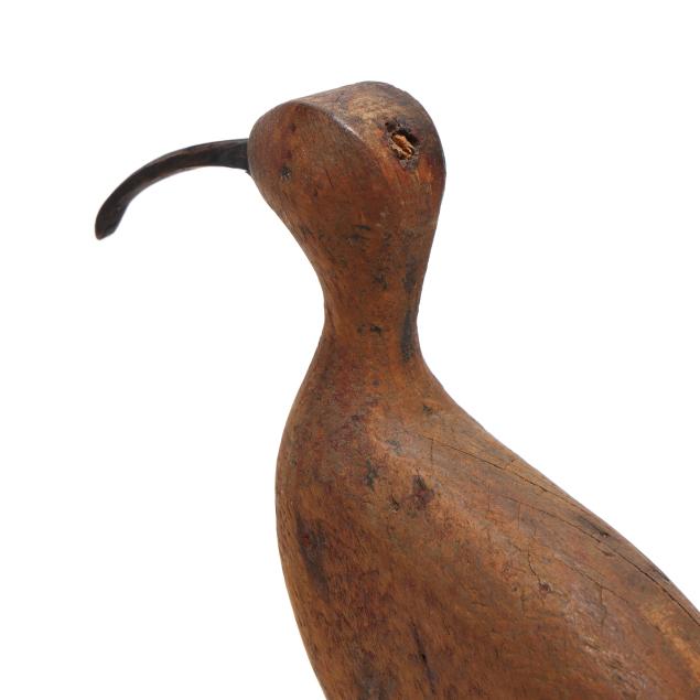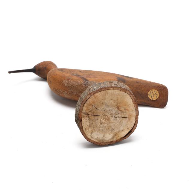 Cape Charles, Virginia, circa 1900, carved and painted wood, wood dowel rod is permanently affixed to the decoy.