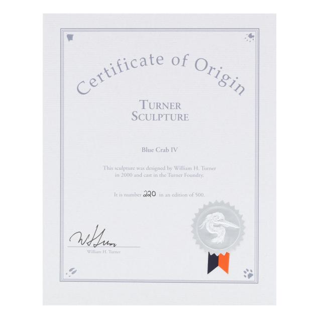 Patinated bronze, edition numbered 220 of 500, signed and dated 2000, with Turner Studios foundry stamp. Included with the Lot is the Turner Studios certificate of origin and studio brochure.