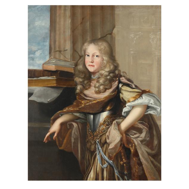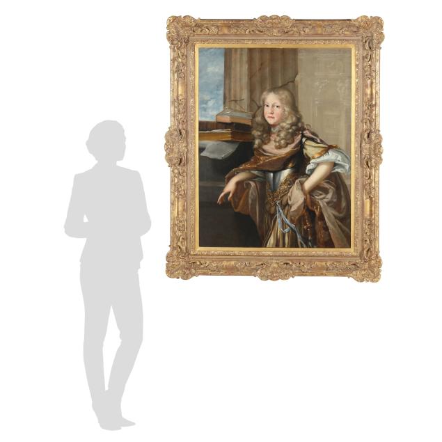 This three quarter length portrait presents a young nobleman in a manner that emphasizes both his family status and his future role within an established lineage. Although still a boy, he is shown with composure and confidence, reinforcing the idea of dynastic continuity. He wears a stylized Roman soldier’s costume, with rich fabrics and gold trim draped over a cuirass, aligning him with the virtues of strength, honor, and civic responsibility associated with antiquity.