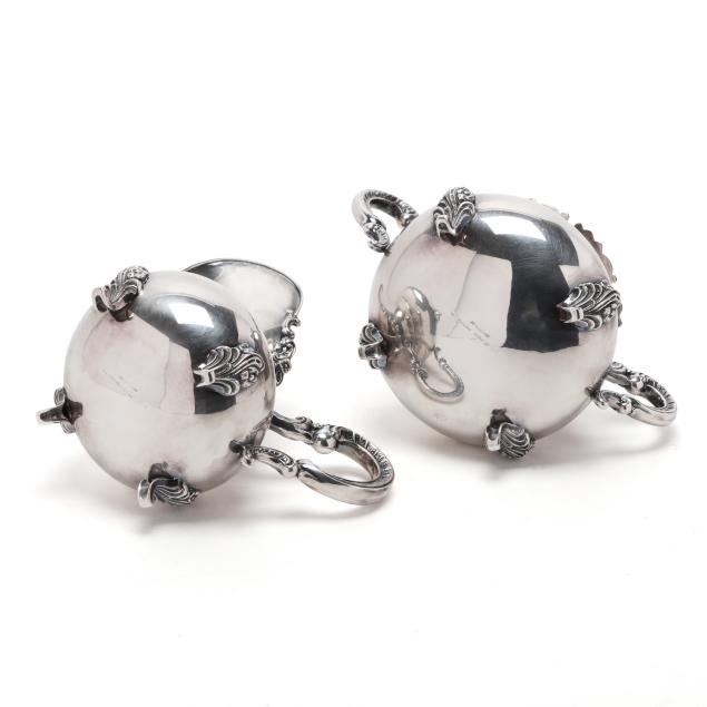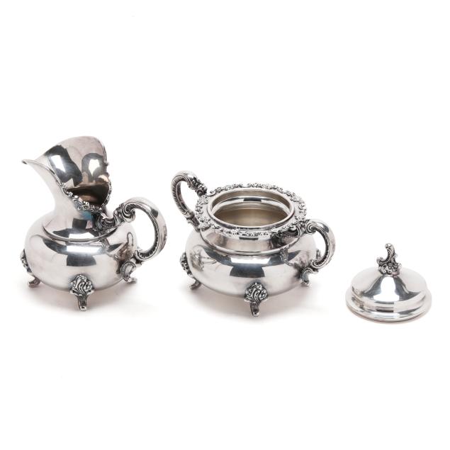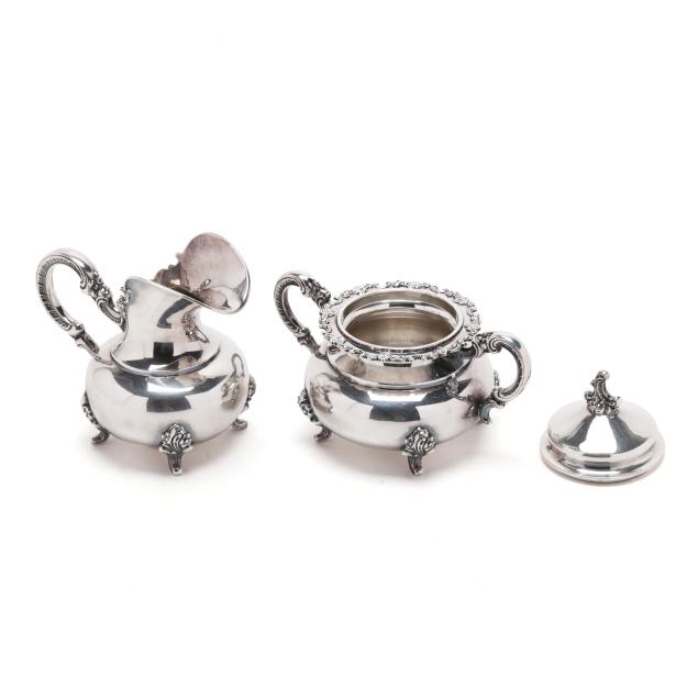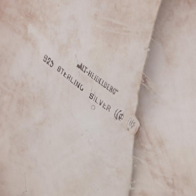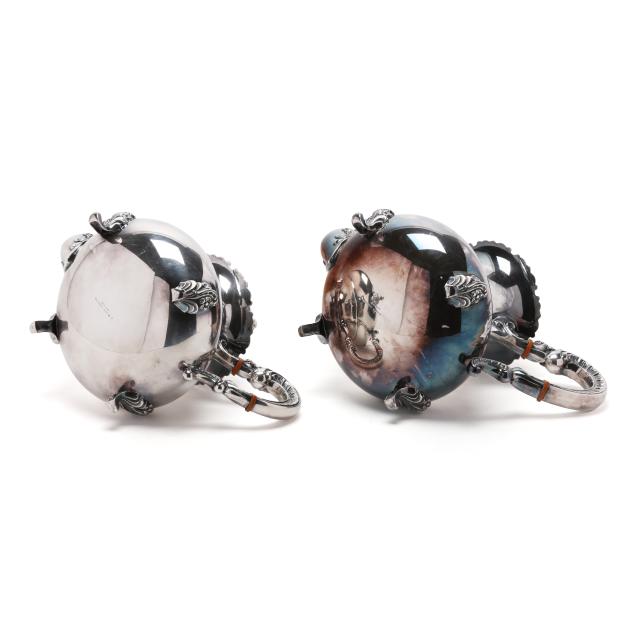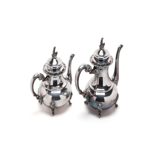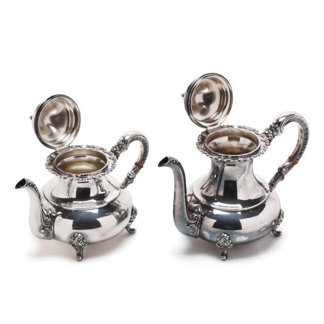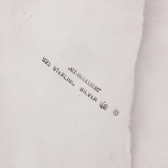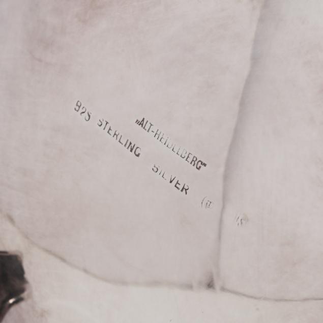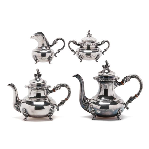 Mark of Alt Heidelberg, circa 1930s, includes a coffee pot (9 3/4 x 11 x 6 in.); a teapot (8 x 10 x 6 in.); creamer; and lidded sugar bowl; all with a floral and scroll motif throughout, not monogrammed.