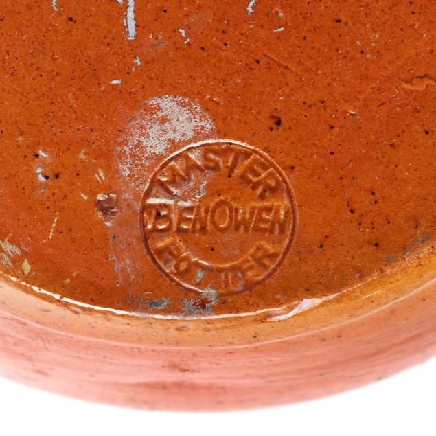 Private Collection, Greensboro, North Carolina Ben Owen jar with small areas of restoration to lid, hairline with associated touchups wrapping rim, small chip to inner rim; jugtown jar with small nick to glaze at base and lid, smoothed nick to inner rim, a few chips to rim of lid.