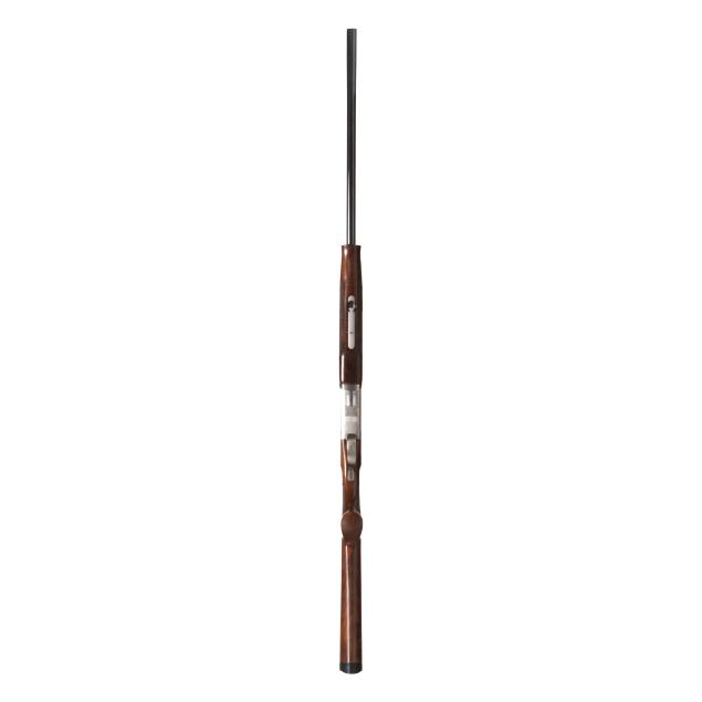 Serial number 22948MZ131 present under top lever of over/under receiver, sparse acanthus and maker insignia and model engraved on both sides of receiver, text of SPECIAL STEEL 28GA 2 3/4" present on 28 in. blued vent rib barrel with middle and front beads, single selective trigger, manual safety, ejectors, checkered pistol grip walnut buttstock with factory recoil pad, checkered walnut forend.