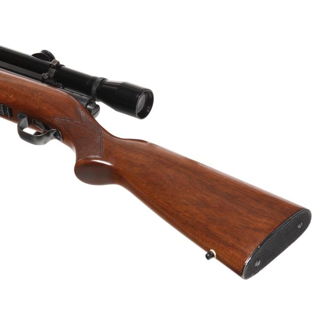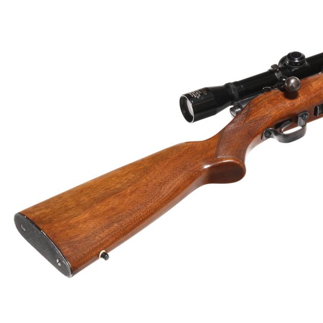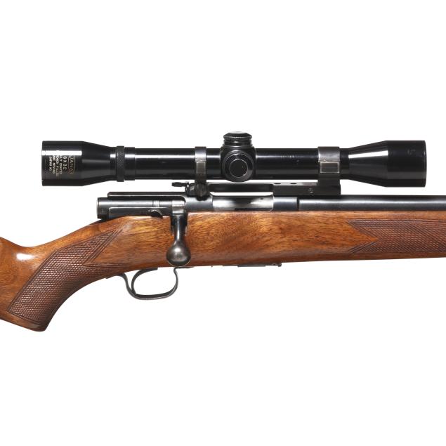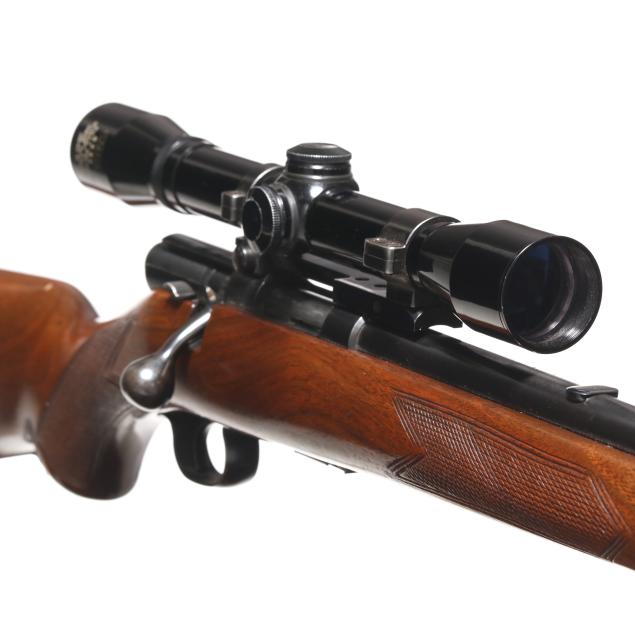 Overall very good estate condition, bluing is indicative of an older used gun yet remains largely intact with no significant blemishes, bore is clean and rifling articulate, view through scope is clear with a sharp reticle, heathy stock finish throughout with faint and rare field marks, checkering remains tactile.