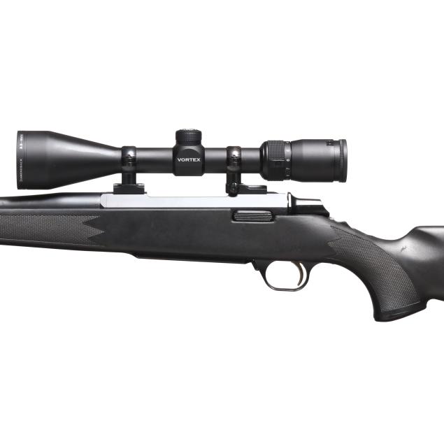 Serial number 32776NR8C7 present on blued bolt-action receiver, text of A-BOLT CAL. .338 WIN MAG ONLY present on 20 in. blued barrel with muzzle brake, manual safety, sling swivel studs, two piece scope base and rings, VORTEX DIAMONDBACK 3.5-10x50 scope, checkered composite stock with factory recoil pad.