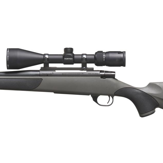 Serial number VB202030 present on matter blued bolt-action receiver, text of USE ONLY .300 WIN MAG. present on matte blued 24 in. barrel, manual safety, one-piece LEUPOLD scope base with rings, VORTEX DIAMONDBACK 3.5-10x50 scope, sling swivel studs, composite stock with tactile rubber inserts at palm swells and forend, factory recoil pad.