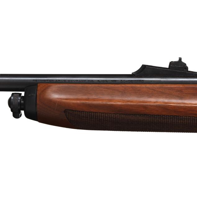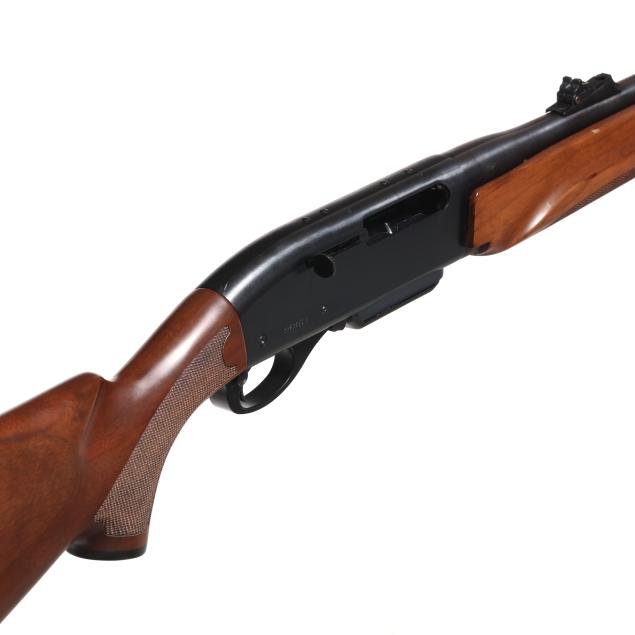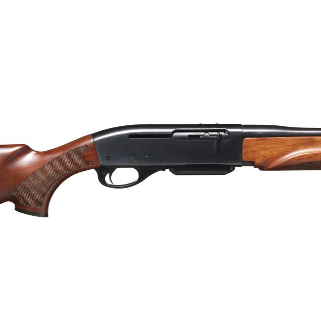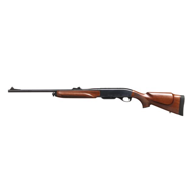 Serial number RR23850V present on blued semi-automatic action receiver, text of .30-06 SPRG present on blued 22 in. barrel with screw-on ramped adjustable rear sight and screw-on ramped front sight, manual safety, rear sling swivel stud, front sling swivel attachment point, checkered capped pistol grip walnut stock with factory recoil pad and checkered walnut forend.