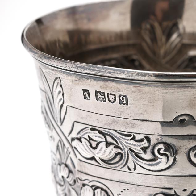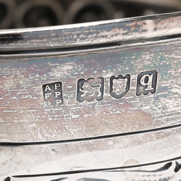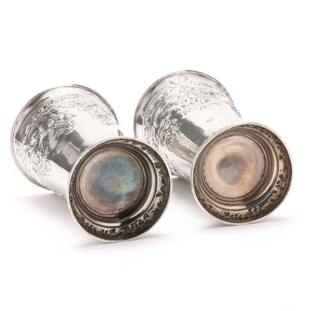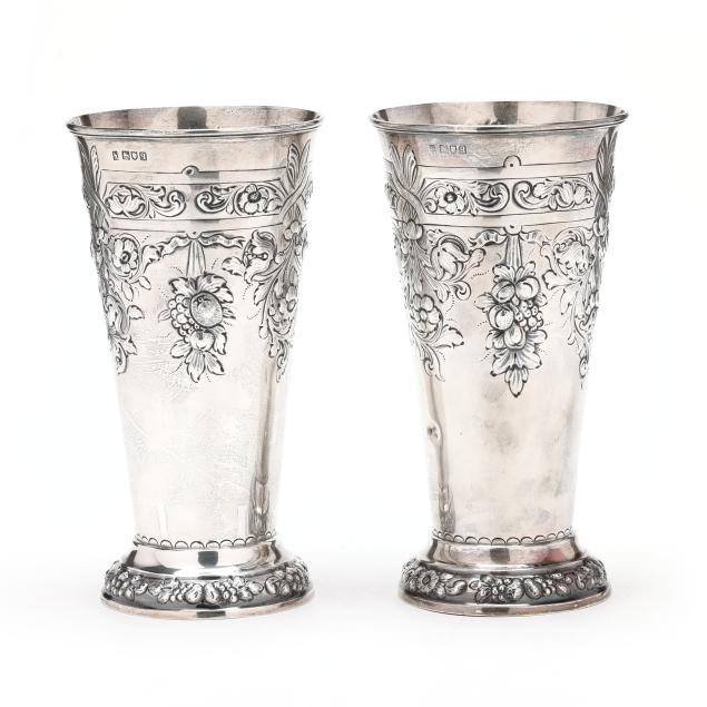 London (1911), each a footed form with repousse foliate sprays to the bases and shoulders, not monogrammed.