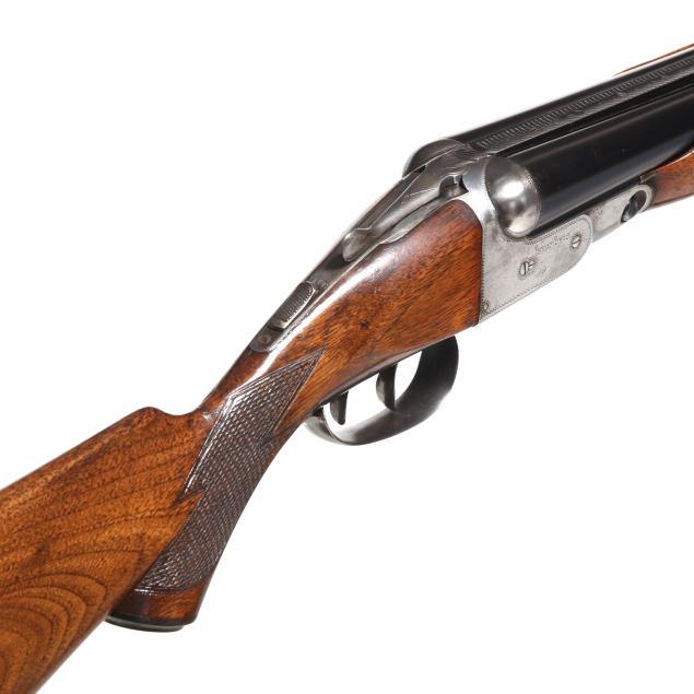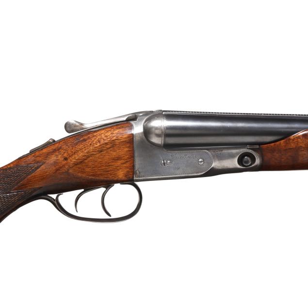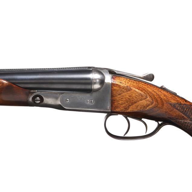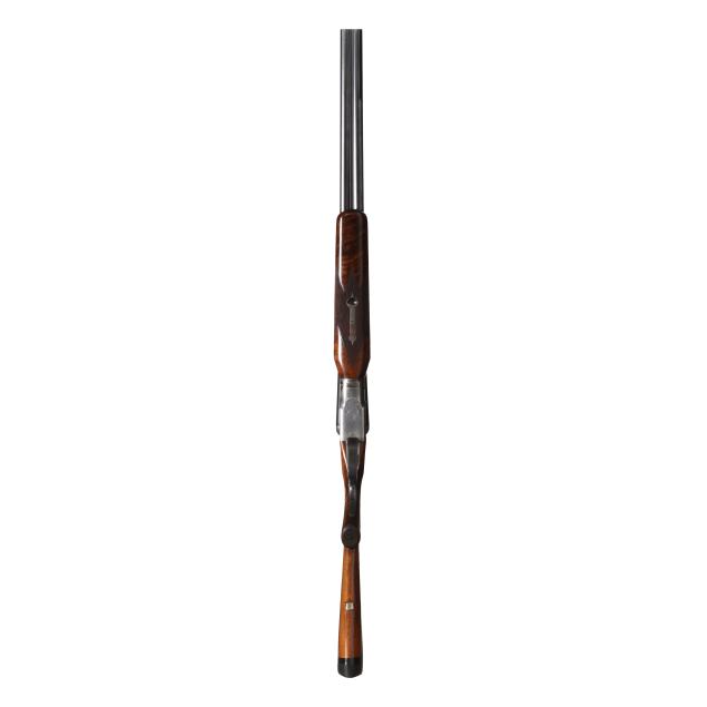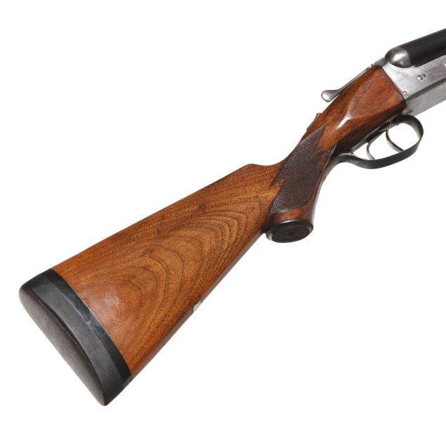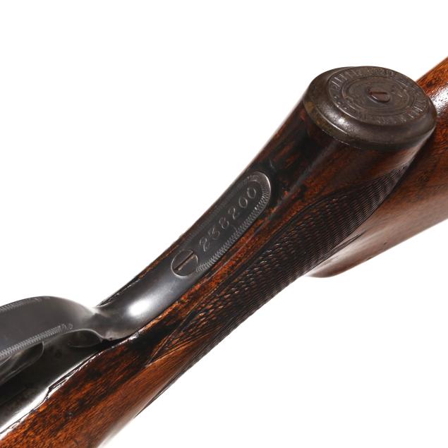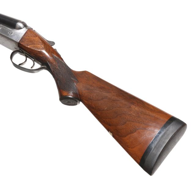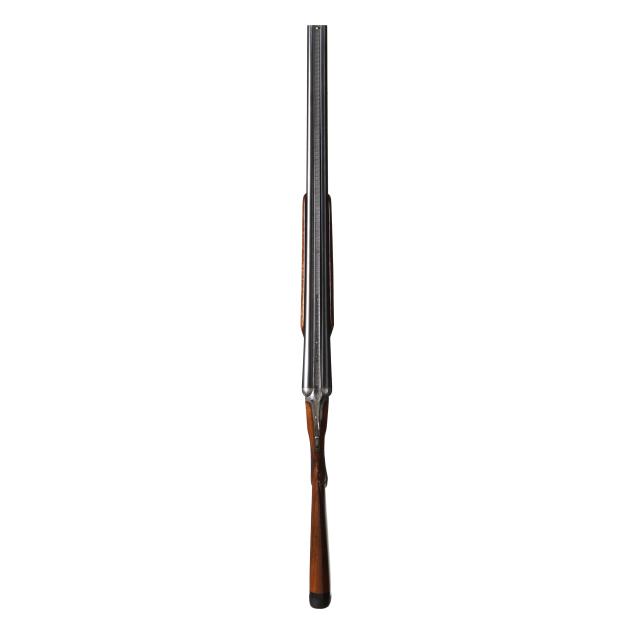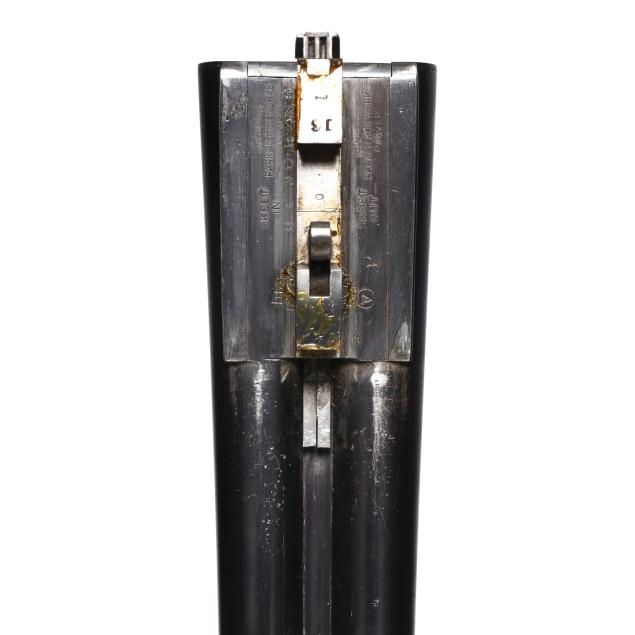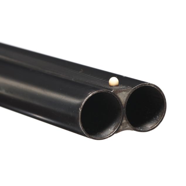 Overall very good estate condition, barrel bluing is strong and dark with only very light scattered field marks present, bores are bright and shiny, barrels rings with a resonant yet slightly muted tone, barrel to receiver fit is tight, very slight screw slot damage, evidence of prior stock repair at the lower wrist, wood finishes are healthy with a moderately glossy sheen and very lightly scattered field marks throughout, checkering are intact and largely clean and crisp, recoil pad remain pliable.