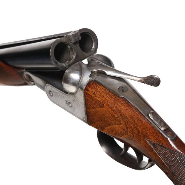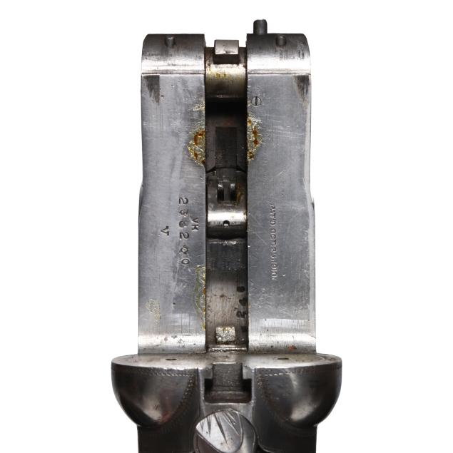 Serial number 238200 present on barrel lug, water table, forend iron and trigger guard, frame size stamped as 1, grade indicator on water table is VH, text of PARKER BROS. MAKERS. MERIDEN, CT. U.S.A. VULCAN STEEL present on matted top rib of 26 in. barrel with front and middle beads, barrel drilled and tapped for mounting NYDAR skeet sight, text of SKEET IN, SKEET OUT and PARKER GUNWORKS OVERLOAD PROOVED present on barrel flats, scraipt engraving of PARKER BROS. present on sides of boxlock ejector action receiver, double triggers, manual safety, ejectors, capped pistol grip checkered walnut stock with aftermarket recoil pad, checkered walnut beavertail style forend.