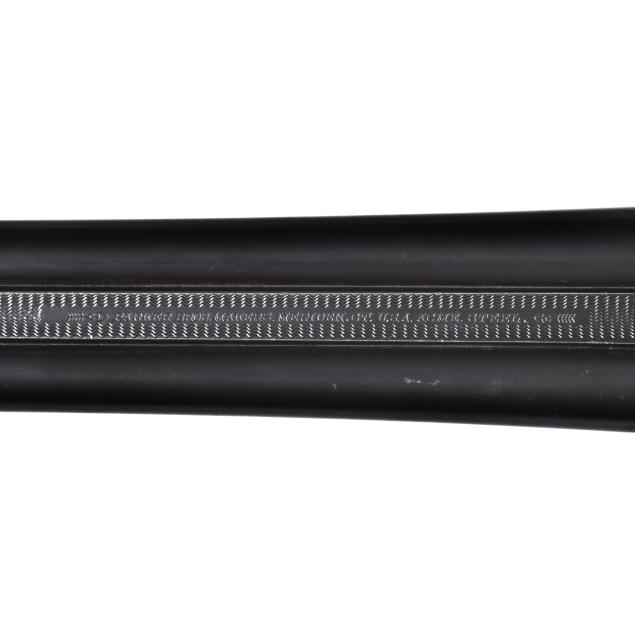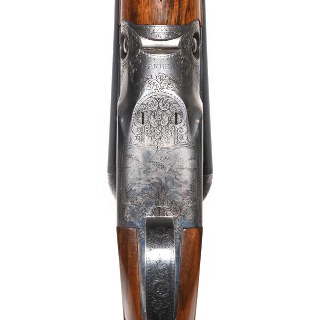Serial number 239029 present on barrel lug, water table, forend iron and engraved trigger guard, frame size stamp indicates 1, grade indicator on water is CH, highly engraved boxlock ejector action receiver depicting dogs on point and duck in flight surrounded by floral scroll and border work, text of PARKER BROS. MAKERS. MERIDEN, CT. U.S.A. ACME STEEL present matted top rib of 28 in. barrel with front and middle beads, text of PARKER GUN WORKS OVERLOAD PROOF present on barrel flats, ejectors, single selective trigger, manual safety, wrap over checkered capped pistol grip walnut buttstock with after market recoil pad, finely checkered walnut splinter style forend.