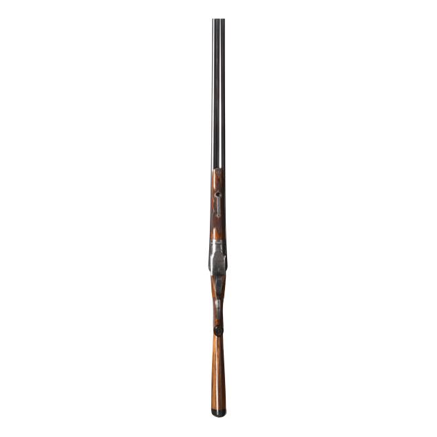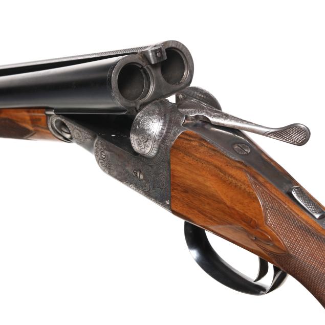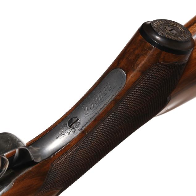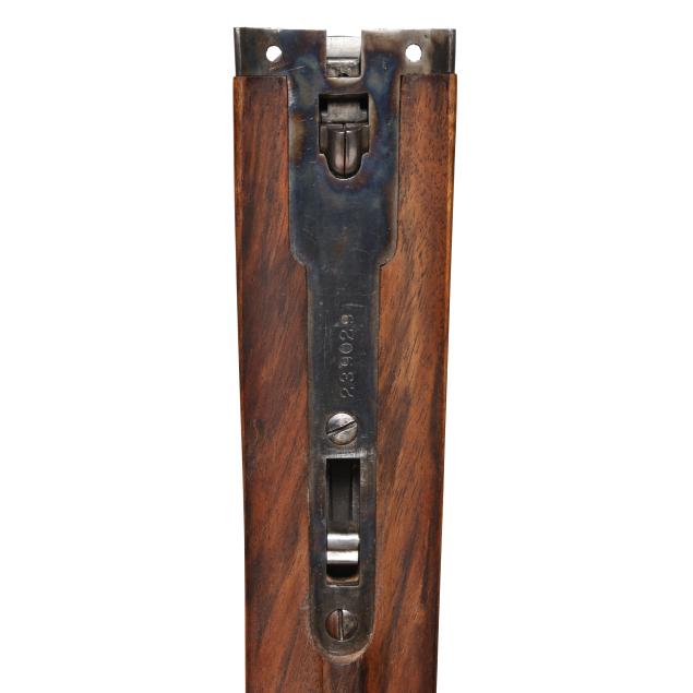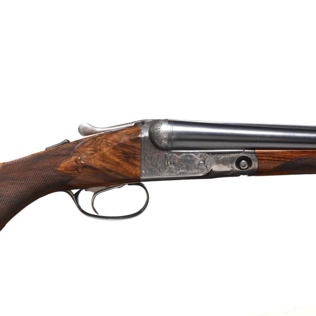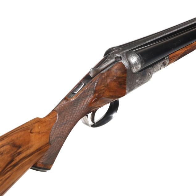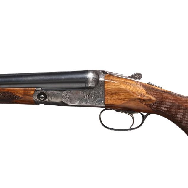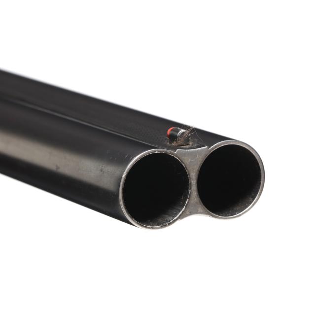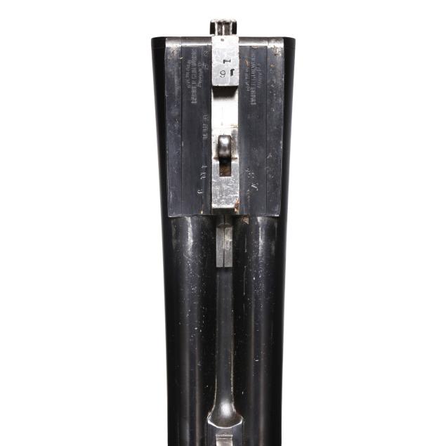 Overall very good estate condition, barrel bluing is dark and healthy with only light indications of use, bores are bright and shiny, barrels ring with clear church bell tone, barrel to receiver fit is tight, engraving through is very clean and undiminished from handling, some color casing colors remain on protect areas, mechanical operation is as designed, buttstock and forend finishes very healthy and possess some light minimal surface depressions, checkering very fine, precise, dry, and very well executed, recoil pad remains somewhat pliable.