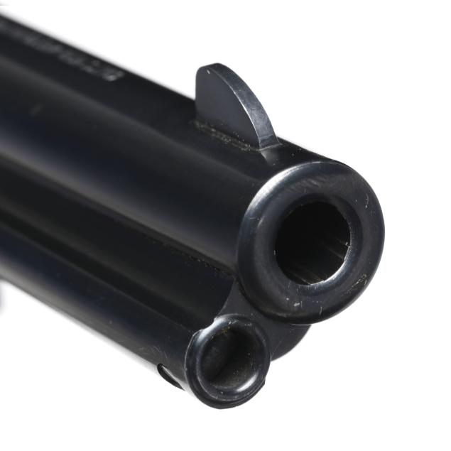 Overall excellent estate condition, blued surface show slight indications of use primarily in the form of cylinder drag line and light wear at edge of muzzle, faint marks from handling elsewhere, color casing displays factory blue, purple, taupe and staw colors, custom mother of pearl grip scales are well fit and in excellent condition, screw slots are undamaged.