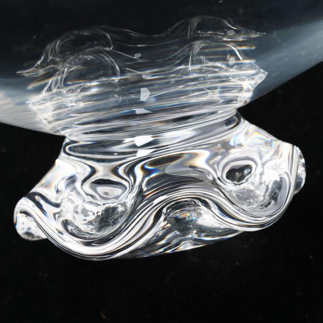 New York, post 1950, clear glass with tooled design feet.