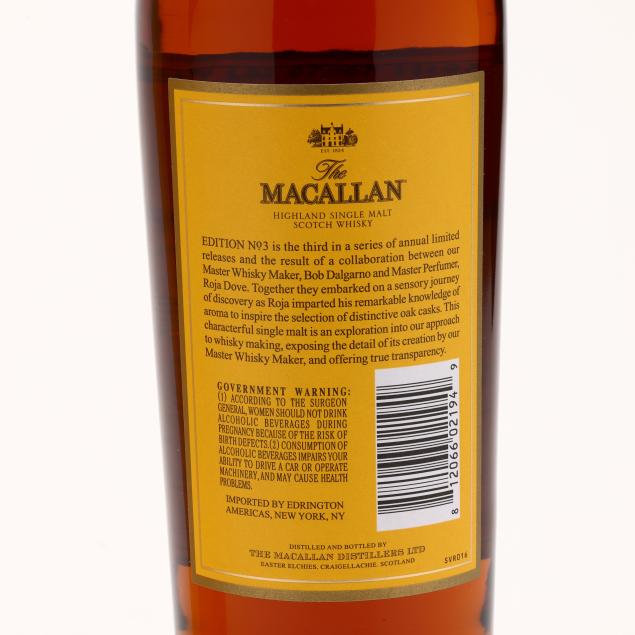 NV, The Macallan Edition No. 3 Highland Single Malt Scotch Whisky, Scotland, 48.3%, 2017 limited edition bottling, bn, sealed, ocb (1 750 ml)